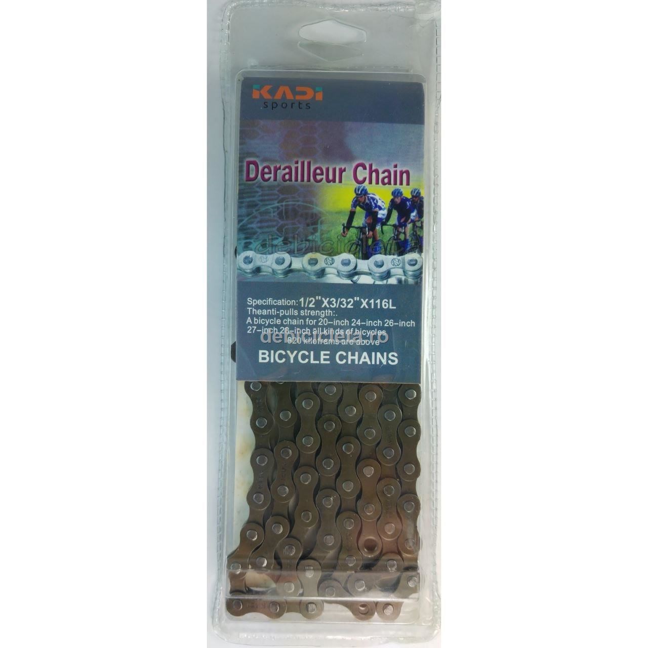 Lanţ angrenaj 116 zale, dimensiune 1/2”X3/32”X116L. Compatibil biciclete 7-8-9 viteze. Închidere nit.