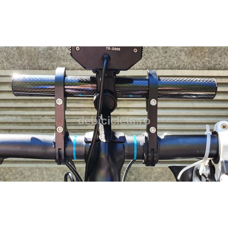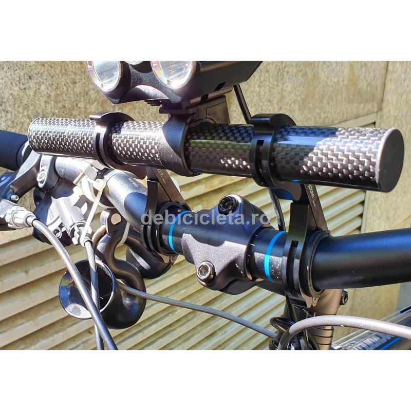 Nu mai ai loc pe ghidon pentru far, sonerie, ciclocomputer, suportul de telefon sau altele? Ai acum o foarte utilă extensie de ghidon de 20cm pentru cicliştii mult prea echipaţi. Greutatea mică, durabilitatea mare dată de materialele folosite şi designul elegant promovează acest produs ca un excelent accesoriu pentru orice ciclist. Extensia poate fi utilizată fie doar pentru a avea o dispunere frontală centrată a farului, iluminarea câmpului vizual devenind simetrică. Montare imediata pe ghidon cu diametrul mai mare de 31.8mm iar pentru ghidoane mai subtiri se poate folosi o garnitura de cauciuc.