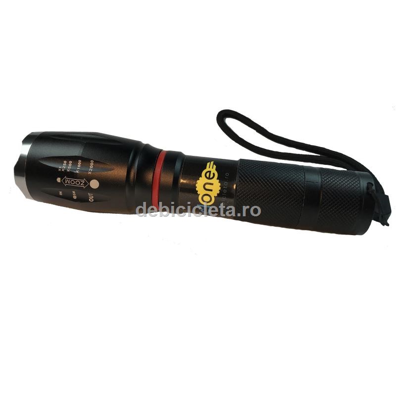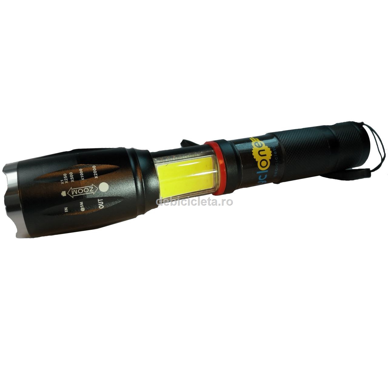 Lanterna profesionala aluminiu Leduri CREE XML-T6 si COB, acumulator Li-Ion, zoom
