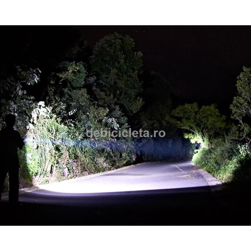 Lanterna profesionala aluminiu Leduri CREE XML-T6 si COB, acumulator Li-Ion, zoom |