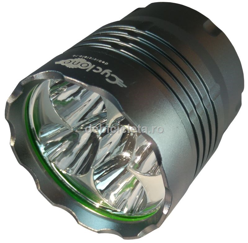 Farul Cyclone 5T6 se deosebeşte de orice far de bicicletă prin robusteţe şi putere. Cele 2 trepte de iluminare continuă, cele 5 LED-uri şi lungimea mică a conului reflector al fiecărui LED oferă o lumină bine echilibrată între profunzime şi lateralul câmpului vizual. Biciclistul cu far Cyclone 5T6 simte în plin forţa fasciculului luminos ce erupe larg către fiecare obstacol din câmpul vizual, nelăsand nimic neluminat. Puterea acestui far este deosebit de mare şi primii 150m devin perfect vizibili. Un design ce inspiră putere şi încredere alături de aspectul dur al corpului din aluminiu ajută la o alegere excelentă pentru trasee denivelate cu viteze mari de deplasare a bicicletei, pentru ture de durată cel mult medie. Nivelul de încărcare al bateriei este uşor de monitorizat datorită semnalizării LED-ului verde de pe spatele farului.