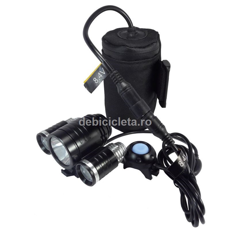 Far + acumulator + incarcator priza 220V + 2 inele silicon + cablu comanda far |