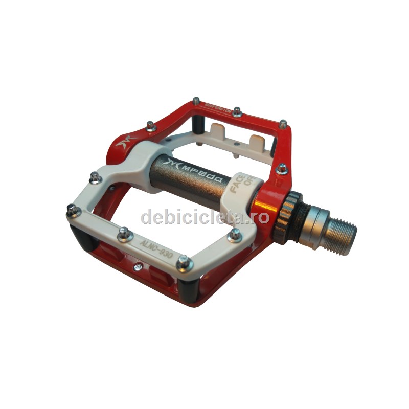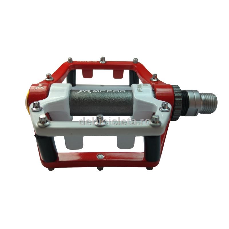 Pedale universale cu rulmenţi capsulaţi cu design specific bicicletelor BMX şi MTB. Filet 9/16". Fiind turnate în acest model, biciclistul beneficiază de o aderenţă foarte bună, talpa încălţării rămânând fixă pe pedale, indiferent de înclinarea piciorului, datorită setului de pini anti-alunecare de pe ambele feţe ale pedalei. Pedale durabile şi late sunt prevăzute cu plăcuţe reflectorizante şi sunt compatibile cu majoritatea bicicletelor de pe piaţă. Culoare: rosu.