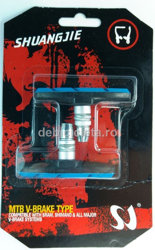 Saboţi de frână cu striaţii pentru o forţă de frecare marită şi o oprire sigură şi fermă. Instalare facilă doar cu o şurubelniţă. Design special pentru biciclete mountain bike MTB. Utilizare garantată chiar şi pe timp umed. Saboţi compatibili cu majoritatea sistemelor de frână tip Vbrake, precum SRAM sau Shimano.