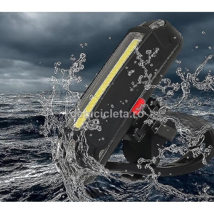 Stop Cyclone SB17 cu alimentare USB. LED tip COB ce produce lumina rosie sau albastra de intensitate a fluxului luminos de 100Lm.