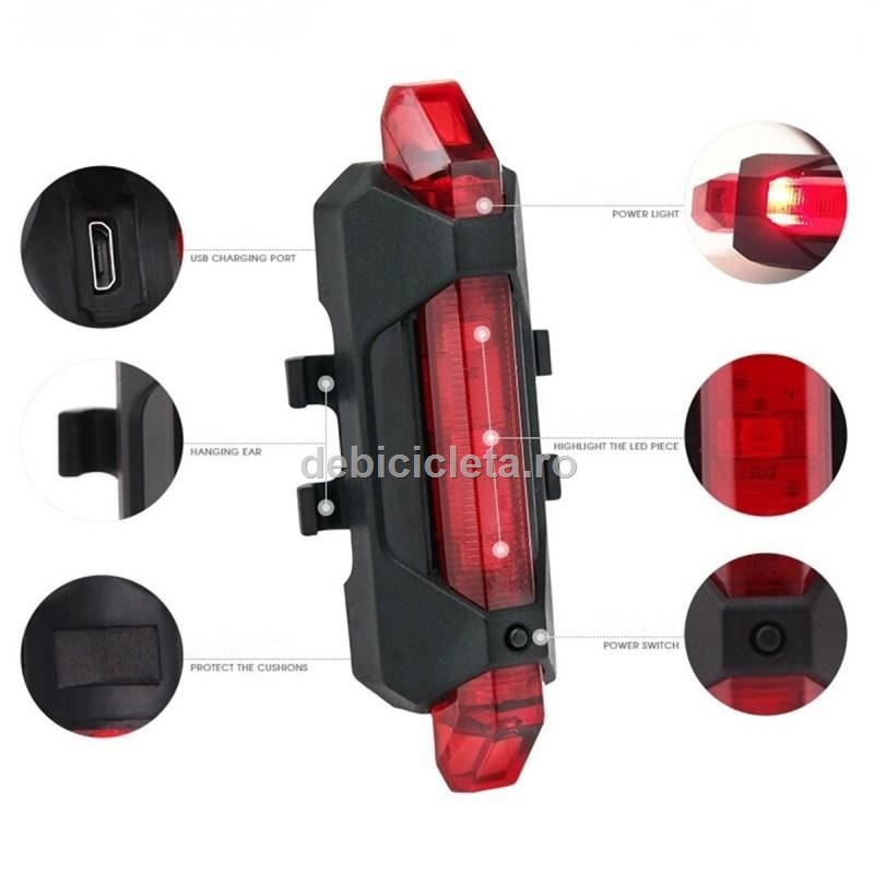 Stop pentru bicicleta cu 5 LED-uri rosii si incarcare la USB furnizeaza un flux luminos puternic si distribuit uniform. Avand patru moduri de iluminare, activate prin apasarea repetata a butonului on/off, stopul este deosebit de solid fiind fabricat din plastic ABS. Cele 5 LED-uri sunt deosebit de luminoase si avand o alternanta neregulata a succesiunii de semnalizare, stopul de bicicleta Volcano marcheaza eficient pozitia biciclistului in trafic. Rezistent la apa, facil de incarcat de la orice power-bank, protejeaza biciclistul prin evidentierea prezentei in trafic.